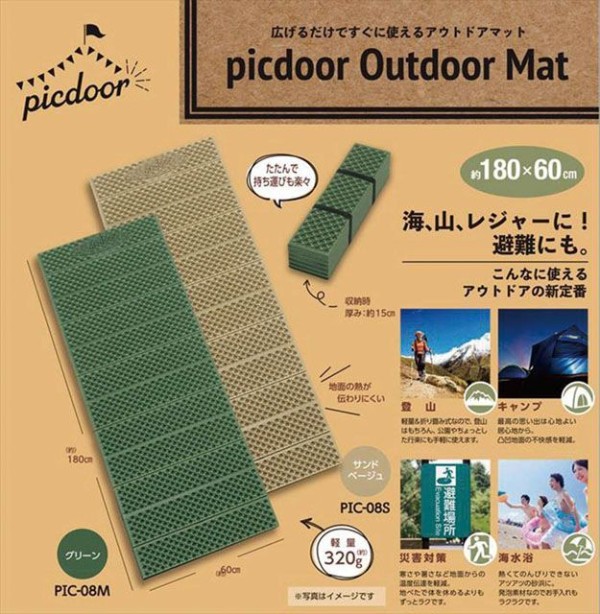 【 最新 2026 ギフト 】 レジャーシート 厚手 キャンプマット マット 折りたたみ 地面 熱 伝わりにくい ゴムバンド付き 持ち運び ラクラク 使用時 縦180cm×横60cm×厚み1cm 軽量 320g picdoor PIC-08M カクセー ピックドア グリーン