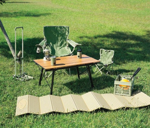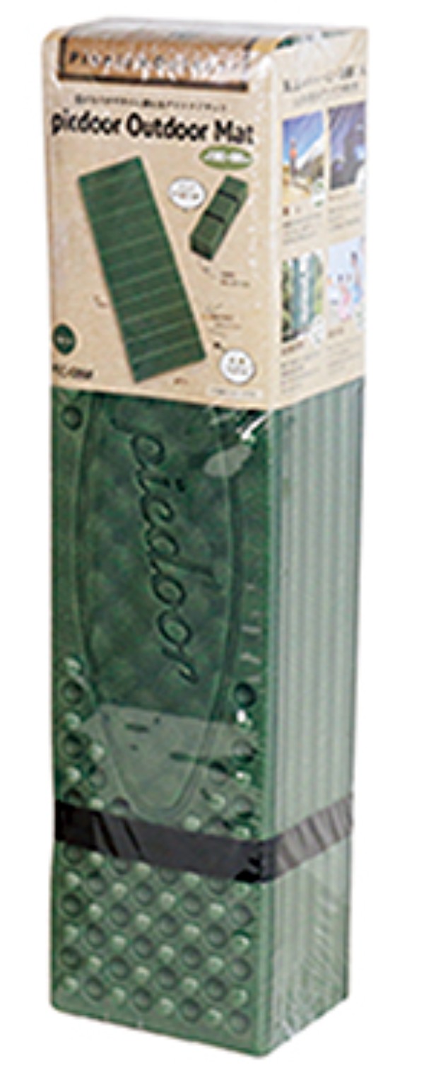 レジャーシート 厚手 キャンプマット マット 折りたたみ 地面 熱 伝わりにくい ゴムバンド付き 持ち運び ラクラク 使用時 縦180cm×横60cm×厚み1cm 軽量 320g picdoor PIC-08M カクセー ピックドア グリーン