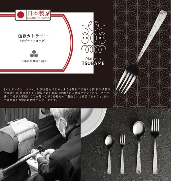 「メイド・イン・ツバメ」は、洋食器をはじめとする金属加工が盛んな街新潟県燕市で製造され、原産地として認証された商品に使用される地域ブランドのマークです。