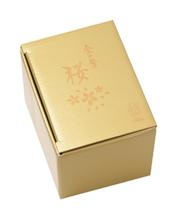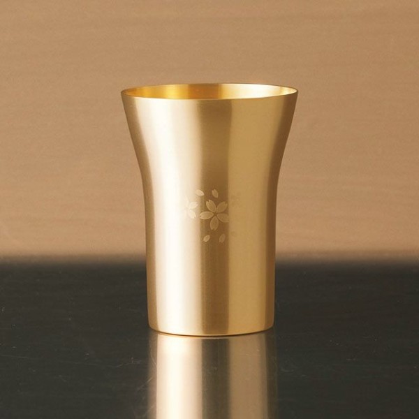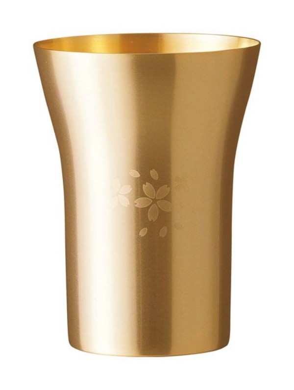 側面サテン仕上のステンレスタンブラーを高級感漂う金メッキを施し、桜の花びらで飾りました。