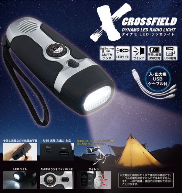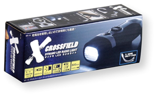 ラジオ ライト 懐中電灯 led 強力 ledライト 手回し充電 電池不要 非常時 最適 キャンプ アウトドア 防災グッズ 防災用品 学校 自治体 災害 地震 台風 XF-14 CROSSFIELD -クロスフィールド- ダイナモLEDラジオライト