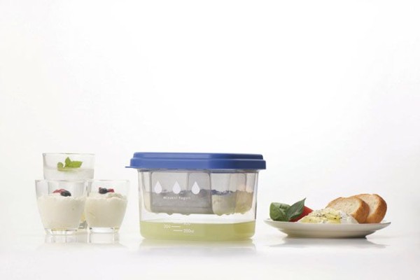 繰り返し使えるステンレスメッシュを使用した水切りヨーグルト器。