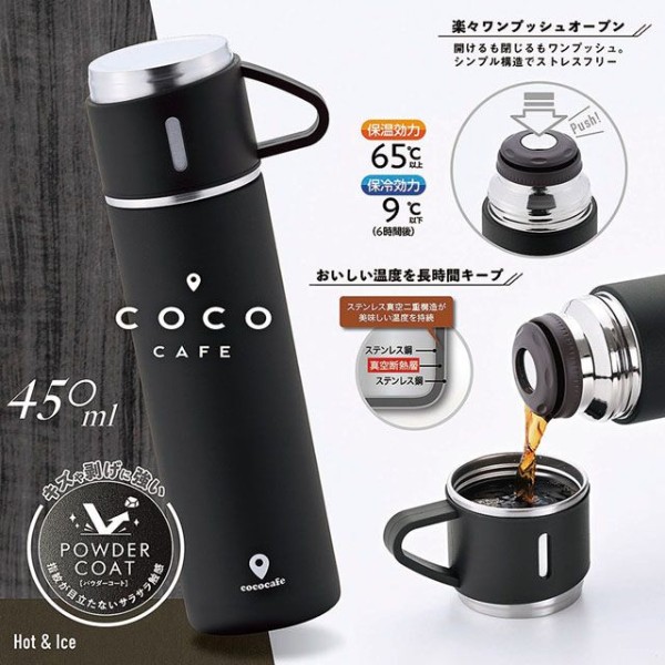 水筒 ステンレス ボトル コップ 付き 保温 保冷 ココカフェ- コップ付き真空二重ボトル