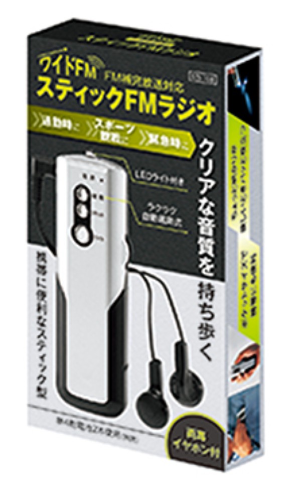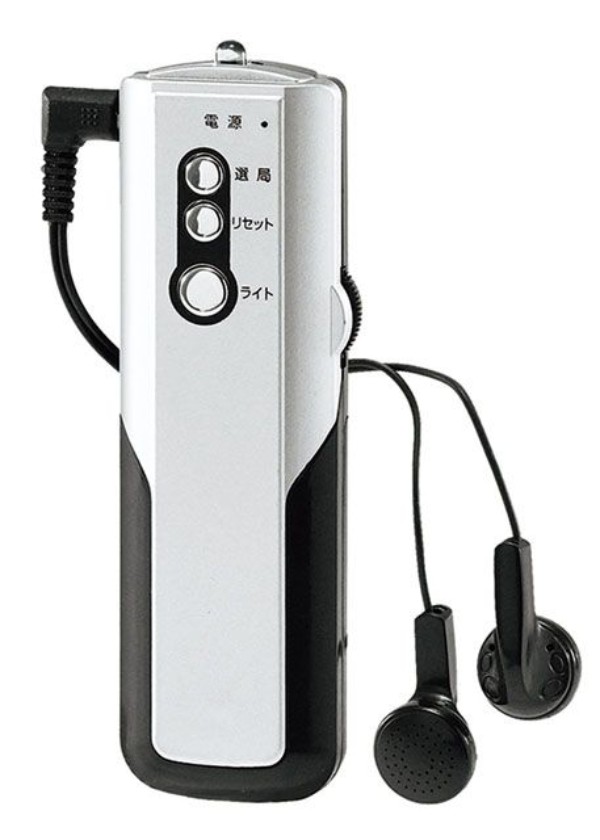 自動選局式、受診周波数/76〜108MHz、電源/単四乾電池×2本(別売)、ライト付き、付属品/両耳イヤホン