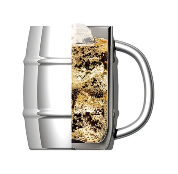 ジョッキグラス 1L タンブラー ビッグ 大 真空 二重 シルバー 真空二重構造 保温 保冷 握りやすい ハンドル 結露しにくい 氷が溶けにくい NMJ-1000 真空二重 マキシマムジョッキ 1.0L