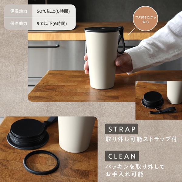 | 保冷・保温機能で飲み頃キープ! フタ付きだからデスクで安心して使える♪ |