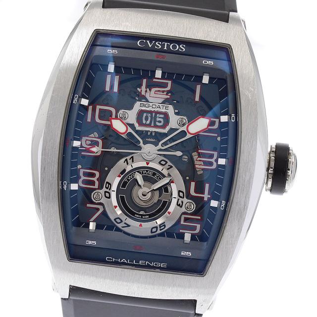 クストス CVSTOS CVT-TW-T2 ST チャレンジ ツインタイム デイト 自動巻き メンズ 良品 保証書付き_874036