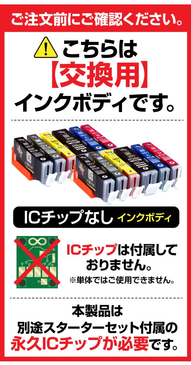 本製品は、純正同等品質とした永久ICチップ専用の交換用インクボディです。メーカー純正品ではありません。