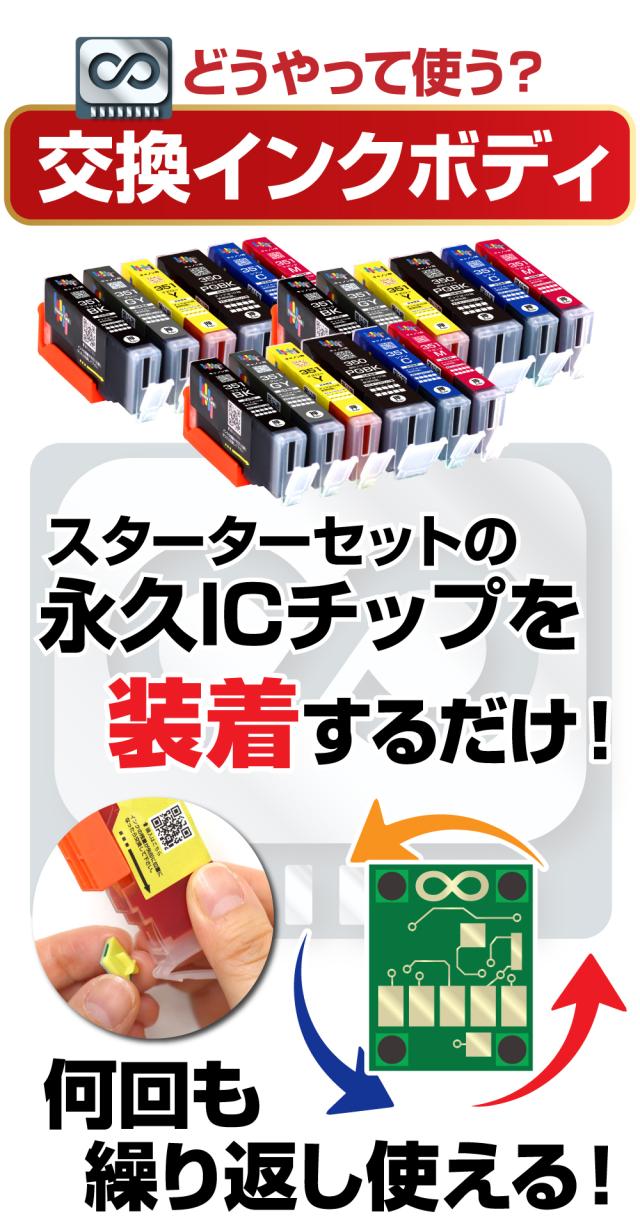 商品の特性:繰り返し使える永久ICチップ専用の交換用インクボディです。 別途、永久ICチップ付きスターターセットが必要になります。 本製品だけでは、ご使用になれませんので予めご了承ください。