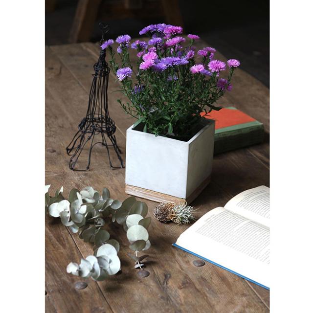 植木鉢 おしゃれ セメントプランター スクエア Sサイズ 受け皿付き 鉢 プランター 多肉植物 観葉植物 花 栽培 ガーデニング 水やり