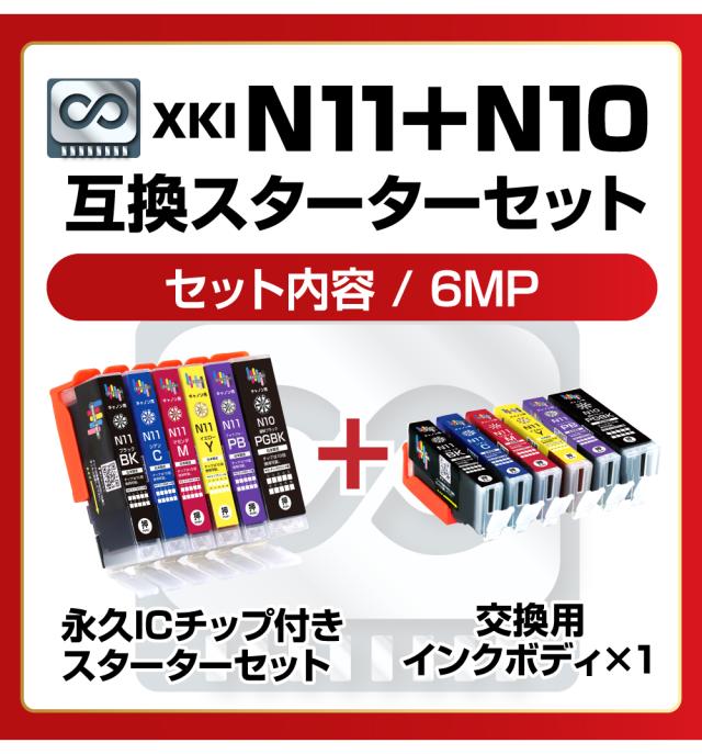 【永久ICチップ付き】XKI-N11+N10 6MP 大容量 6色セット スターターセット キャノン Canon 互換インクカートリッジ エコロジー ゴミ削減 XKI N10PGBK N11BK N11C N11M N11Y N11PB PIXUS XK90 XK80 XK70 XK60 XK50