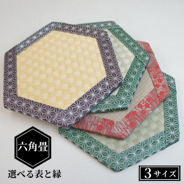 ミニ畳 六角畳 日本製 和風生活館 直径20cm 直径23cm 直径29cm 高さ約1.5cm 畳表 国産い草表 ダイケン和紙表 セキスイMIGUSA市松表 表28種類 縁約90種類 リモートワーク お正月置物 雛人形 五月人形 玄関置き台 tatami フィギア畳