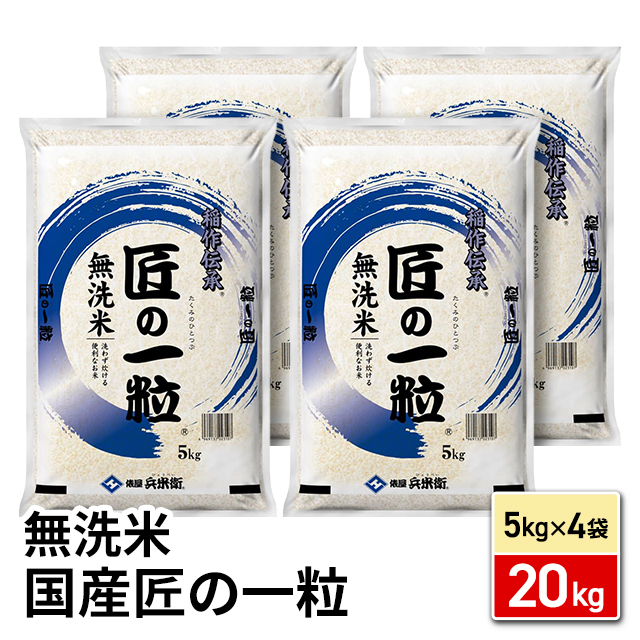 商品名 無洗米 国産匠の一粒 20kg(5kg×4袋) 容量 20kg(5kg×4袋) 原材料名 複数原料米