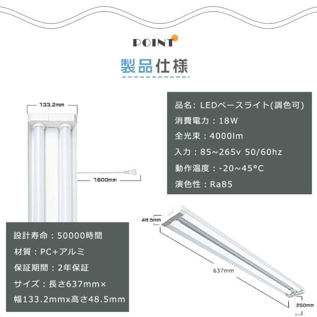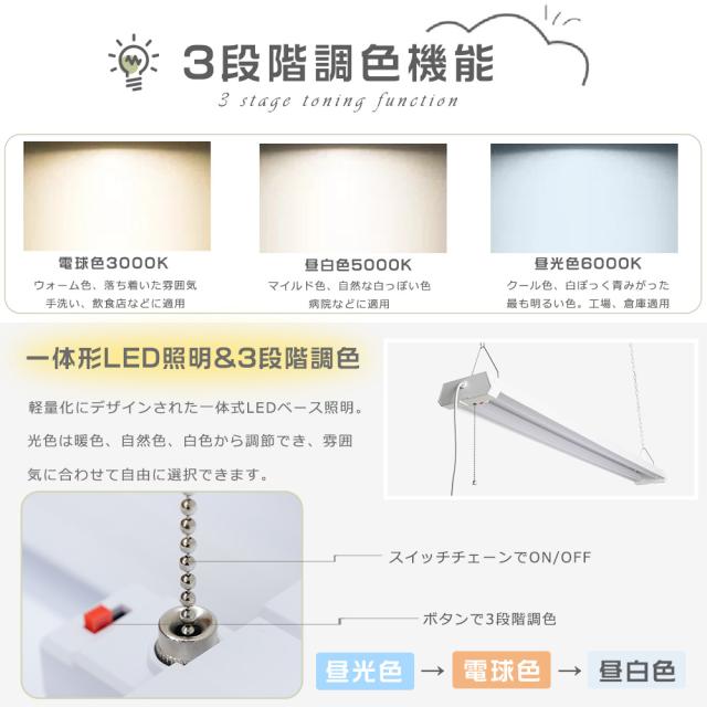 ≪2年保証≫LEDベースライト プルスイッチ付き LED蛍光灯 器具一体型 20W形 2灯相当 3段階調色 電球色 昼白色 昼光色 プルスイッチ付きLED照明 LED蛍光灯器具 吊り下げ 天井直付型 LED シーリングライト プルスイッチ付 消費電力18W 高輝度3600lm 事務所 倉庫 節電 送料無料