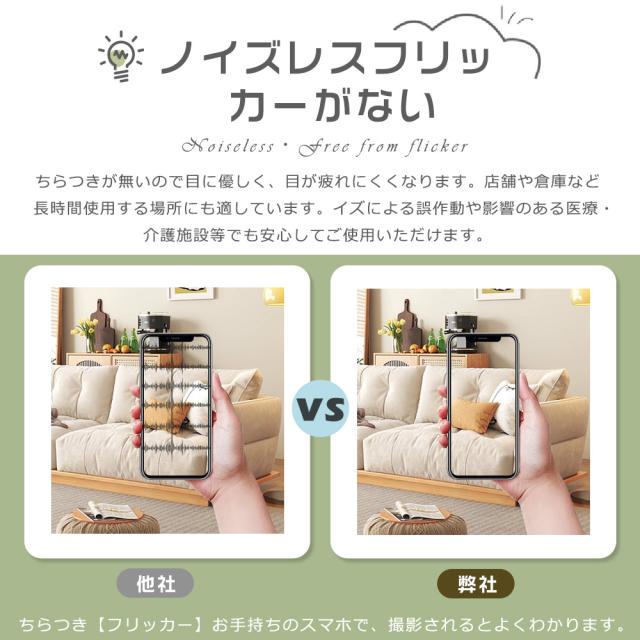 ★ちらつきを抑える、虫が寄りつきにく、病院・オフィス・学校・公共場所・展示場・製薬会社・食品工場・営業所・工場などノイズ対策必要な場所にもご満足いただけます。