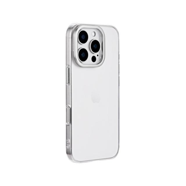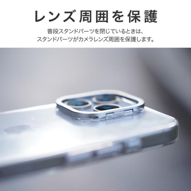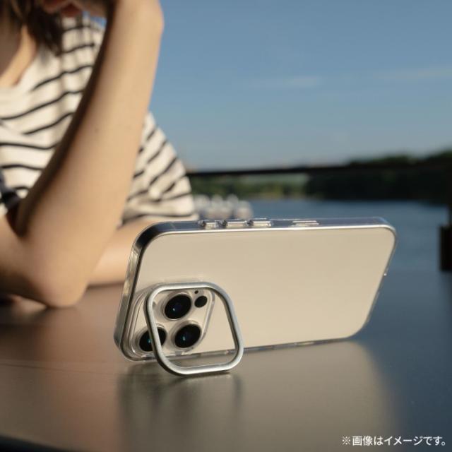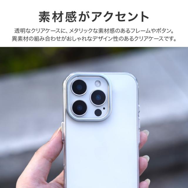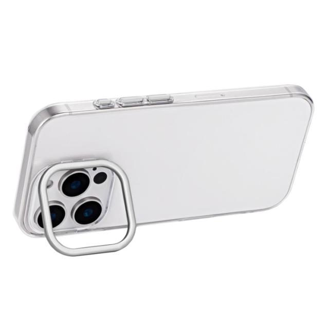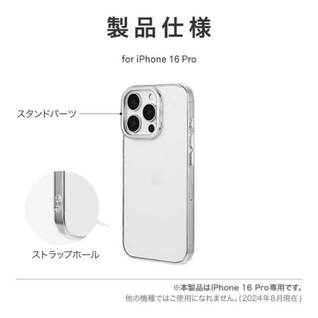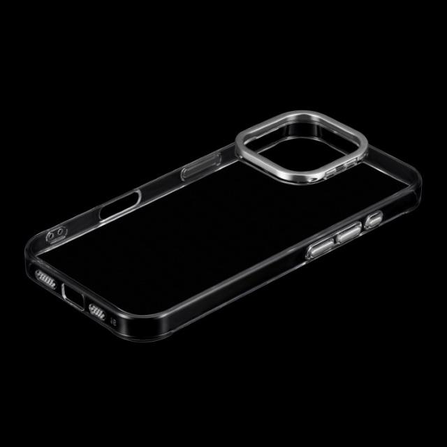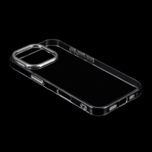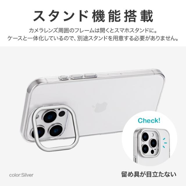 iPhone16Pro ケース クリア 透明 カメラ保護 シルバー アルミフレーム ハイブリッド スマホスタンド 無地 保護 スマホ カバー シンプル mycam LN-IP24MCSSV