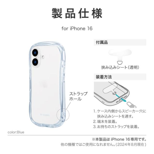 iPhone16 ケース クリア 透明 ブルー クリアバンパー ストラップホルダー 付 耐衝撃 MILスペック 無地 保護 スマホ カバー シンプル ラウンド フォルム くびれ