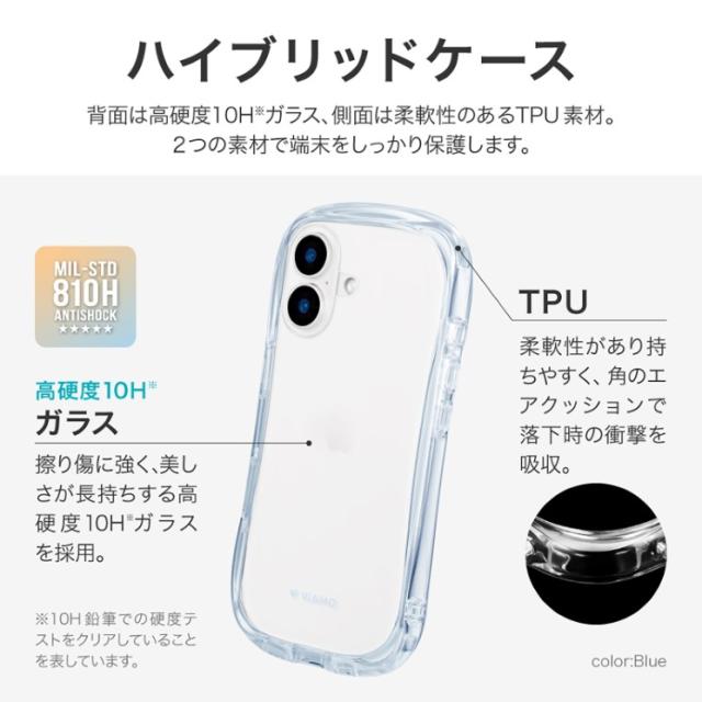 iPhone16 ケース クリア 透明 ブルー クリアバンパー ストラップホルダー 付 耐衝撃 MILスペック 無地 保護 スマホ カバー シンプル ラウンド フォルム くびれ iPhone 2024 6.1inch 2眼 アイホン アイフォン ViAMO crystal LN-IM24VMCRBL