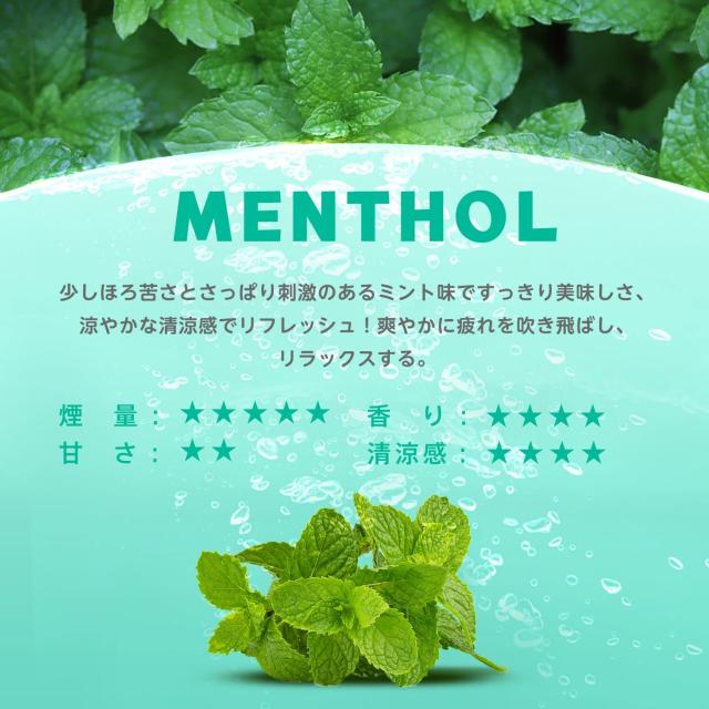 ●ミント:少しほろ苦さとさっぱり刺激のあるミント味ですっきり美味しさ、涼やかな清涼感でリフレッシュ!爽やかに疲れを吹き飛ばし、リラックスする。
