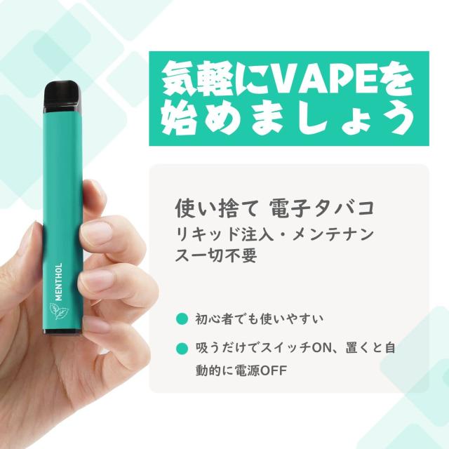 ・梱包内容:使い捨て電子タバコ x5本、日本語取扱説明書