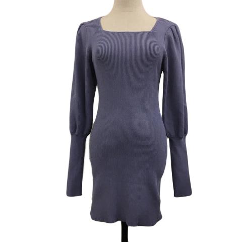 【中古】スライ SLY ワンピース ニット タイト ミニ スクエアネック リブ パフスリーブ 長袖 1 紫 パープル