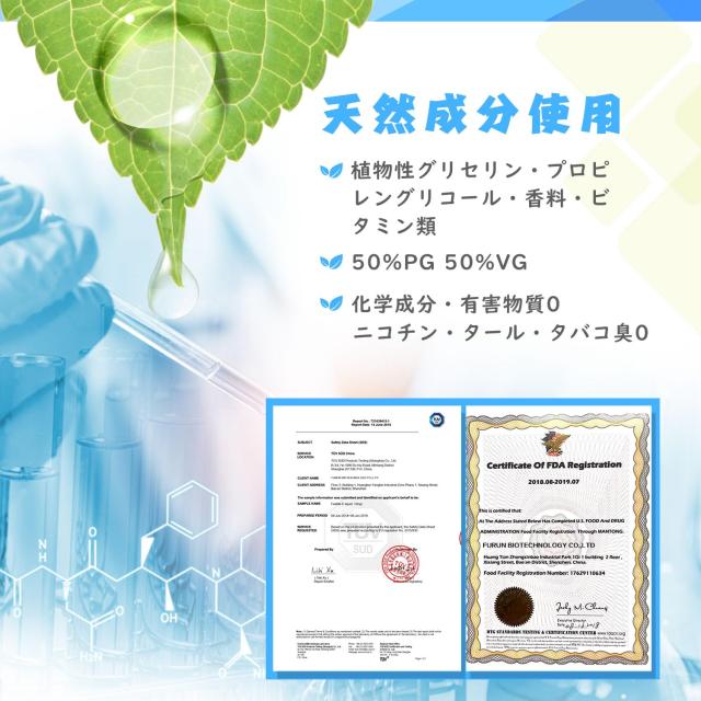 ・リキッドメイン成分:植物性グリセリン50%、プロピレングリコール50%、香料、ビタミン類