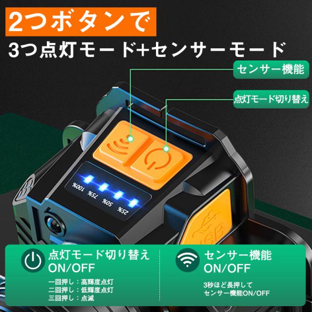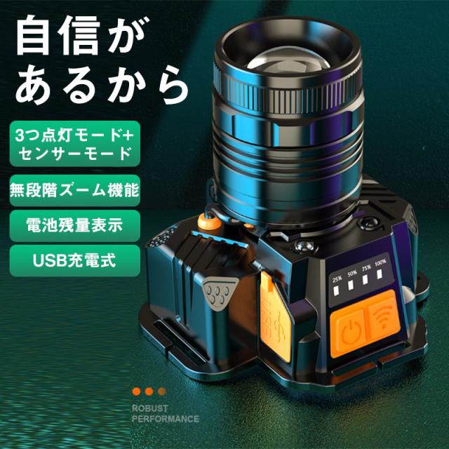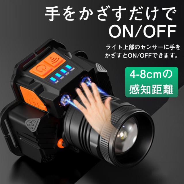 ヘッドライト 充電式 センサー機能 ledヘッドライト ヘットライト ヘッドランプ 釣り 登山 アウトドア キャンプ ヘルメット用 18650 軽量