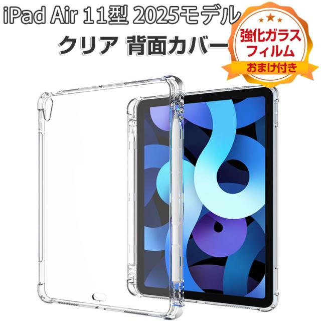 Apple iPad Air 11インチ (M3チップ) ケース クリア 耐衝撃 カバー 2025年春モデル アイパッド エアー 11型 カバー タブレット 薄型 TPU素材製 ソフトケース Pencil Pro収納 衝撃吸収 透明 人気 おすすめ おしゃれ 背面カバー CASE 強化ガラスフィルムおまけ付き