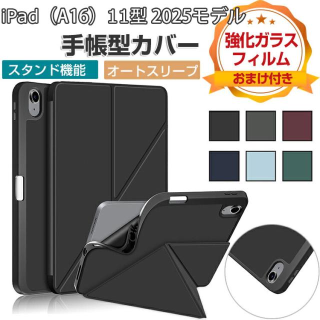 Apple iPad (A16チップ) 第11世代 11インチ ケース 2025年春モデル アップル アイパッド 11型 (A16チップ) 手帳型カバー TPU+PUレザー Pencil Pro収納 オートスリープ スタンド機能 CASE 持ちやすい 汚れ防止 落下防止 耐衝撃 ケース 強化ガラスフィルム おまけ付き