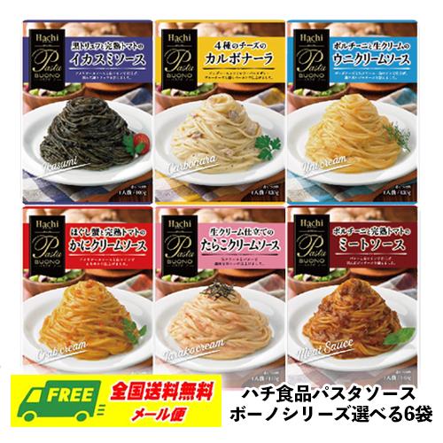 ハチ食品 パスタソース ボーノシリーズ 選べる 6袋 パスタ スパゲッティ メール便 代引・配達日時指定不可