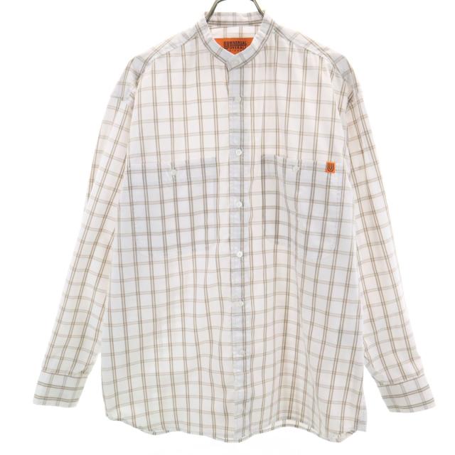UNIVERSAL OVERALL ユニバーサルオーバーオール チェック柄 長袖 バンドカラーシャツ S ホワイト メンズ