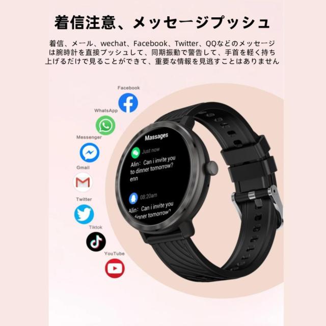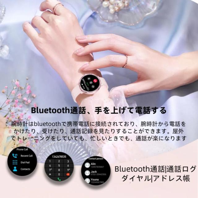 【通話機能?着信通知】ペアリング設定を済まして、連携した携帯電話に届いた着信やメール、LINE、Skype、Facebook(Meta)、Twitter(X)、Instagram、SNSの受信などの通知をスマートウォッチに同期できます。着信やメッセージを見逃す心配はいりません。スピーカーとマイクを内蔵し、携帯電話を出さなくても、通話することができます。
