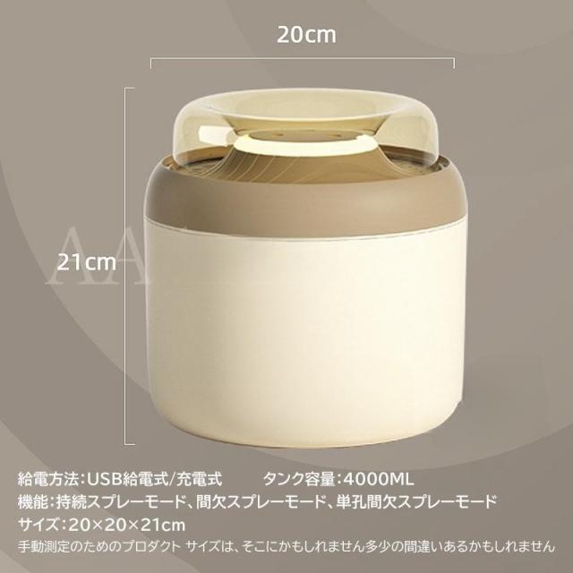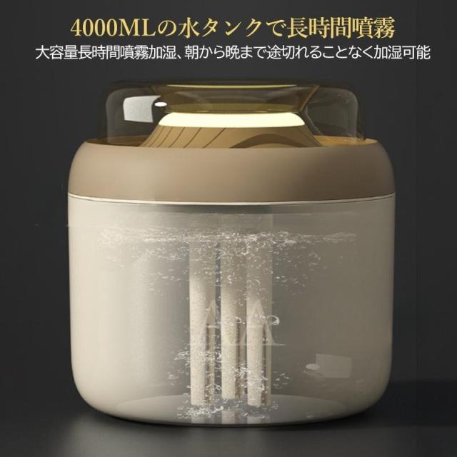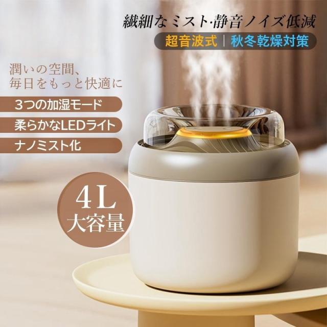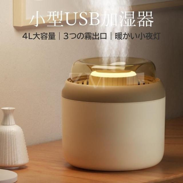 加湿器 大容量 4L 卓上 おしゃれ 静音 超音波式 上から給水 省エネ アロマ 小型 LEDライト付き USB給電/充電式 北欧 空気浄化 空焚き防止 ホワイト