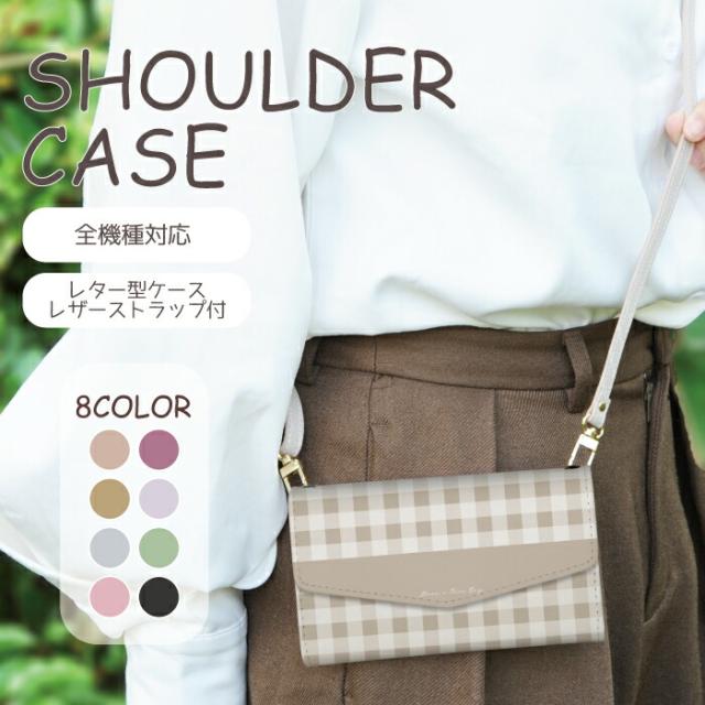 Aquos wish2 wish3 ケース アクオスwish2 ショルダー ストラップ付き カバー 韓国 かわいい くすみカラー チェック柄 ギンガムチェック シンプル おしゃれ ピンク ベージュ グレージュ