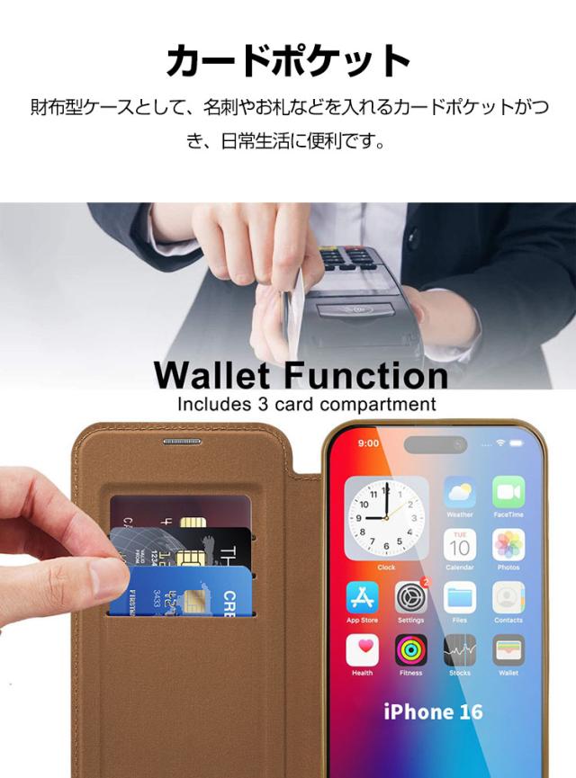 アップル アイフォン 16e Apple iPhone 16e ケース カバー 手帳型 PUレザー おしゃれ CASE 汚れ防止 スタンド機能 便利 実用 カード収納 ブック型 カッコいい 人気 ワイヤレス充電をサポート 手帳型カバー 強化ガラスフィルム おまけ付き