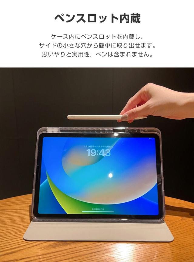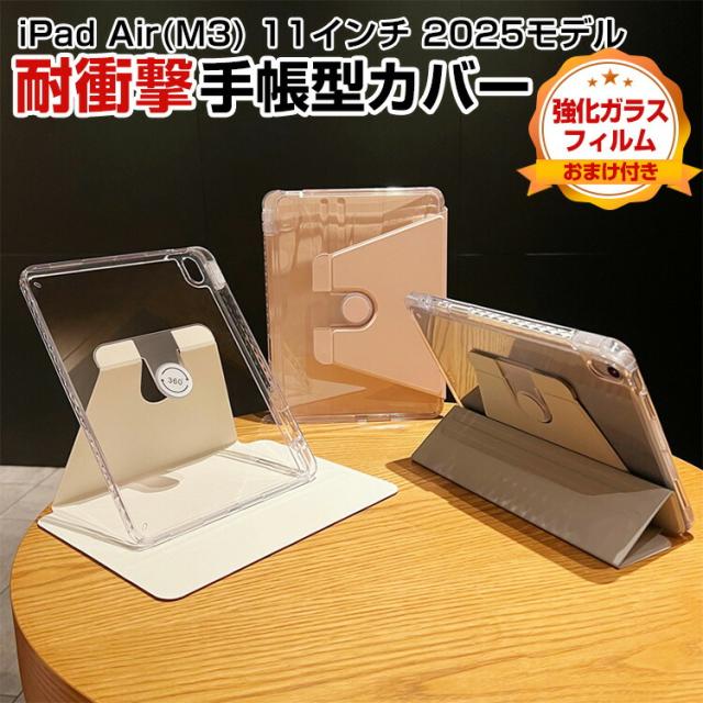 アップル iPad Air 11インチ (M3チップ) 2025年春モデル ケース カバー タブレットケース 耐衝撃カバー CASE オートスリープ 手帳型カバー Pencil収納機能 スタンド機能 PUレザー ブックカバー 透明背面カバー 強化ガラス付き