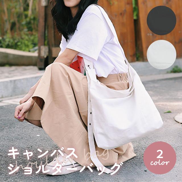 ★ 送料無料 ★ 1000円ポッキリ ★ キャンバス ショルダーバッグ ブラック ホワイト 黒 白 斜め掛け 帆布 軽量 大容量 A4 レディース ガールズ 女性 大人 中学生 高校生 大学生 通勤 通学 高見え プチプラ おしゃれ シンプル