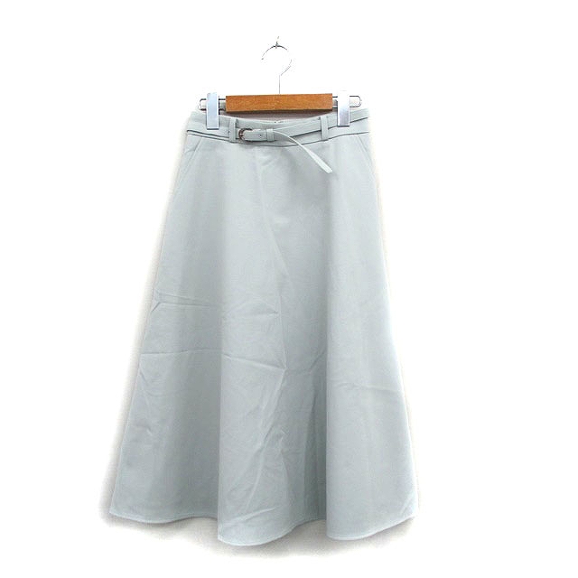 【中古】エムプルミエ ブラック M-Premier BLACK フレア スカート ロング ベルト シンプル 34 ライトブルー 水色 /KT15 レディース