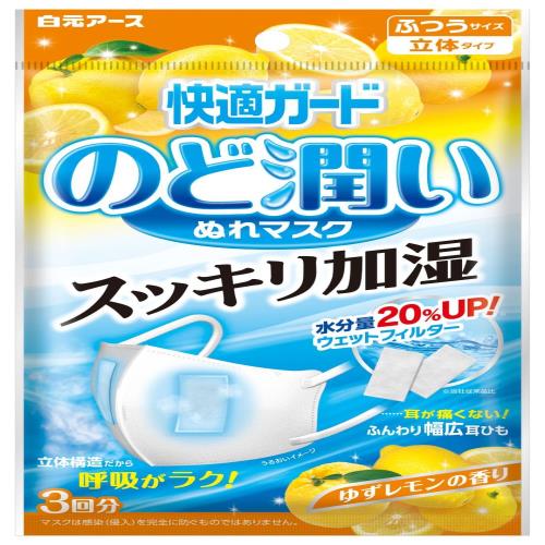 [快適ガード] のど潤いぬれマスク ゆずレモンの香り ふつうサイズ 3セット入