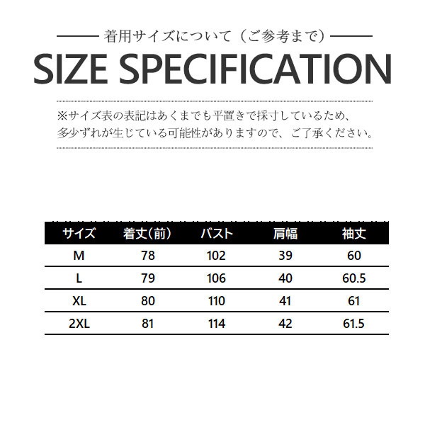 ※基本的に、XL・LL・2Lのサイズはすべて同じサイズです。
