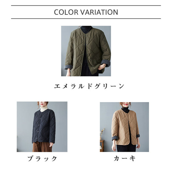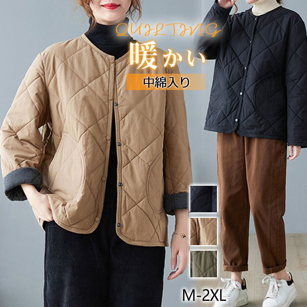 ポイント超超祭 キルティングコート レディース カジュアル ショート 中綿 アウター 防寒 ノーカラー ブルゾン ジャケット 軽量 暖かい きれいめ オフィス agesugi_sfa