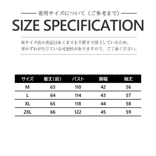 ※基本的に、XL・LL・2Lのサイズはすべて同じサイズです。