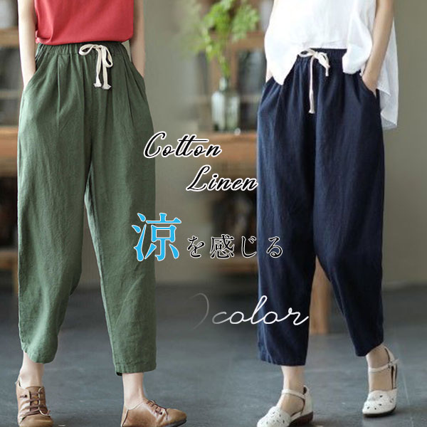 【本日の激短SALE】ワイドパンツ レディース ガウチョパンツ リネン ウェストゴム 美脚 9分丈 無地 ゆったり 着痩せ スカンツ 麻混 春夏 快適 体型カバー 接触冷感 agesugi_sfa