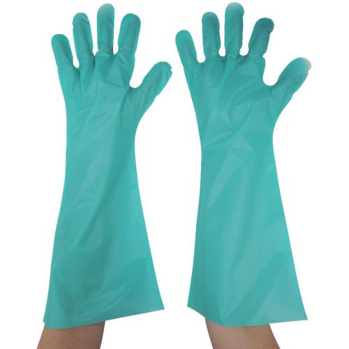 東京パック エンボス手袋ロング五本絞り グリーン L GL45L ポリエチレン使い捨て手袋