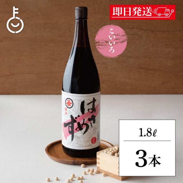 福岡醤油店 はさめずこいいろ 1.8L 瓶 3本 醤油 しょうゆ 調味料 濃口 こいくち 濃 一升瓶 はさめず醤油 木桶仕込 丸大豆仕込 老舗の蔵 挟めず はさめづ ランキング 業務用 大容量 送料無料