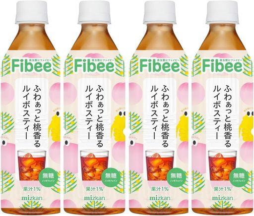 FIBEE ミツカン ふわぁっと桃香る ルイボスティー 500ML×4本 | 腸まで届く 発酵性 食物繊維 腸活 イヌリン 無糖 ノンカフェイン フレーバーティー ファイビー