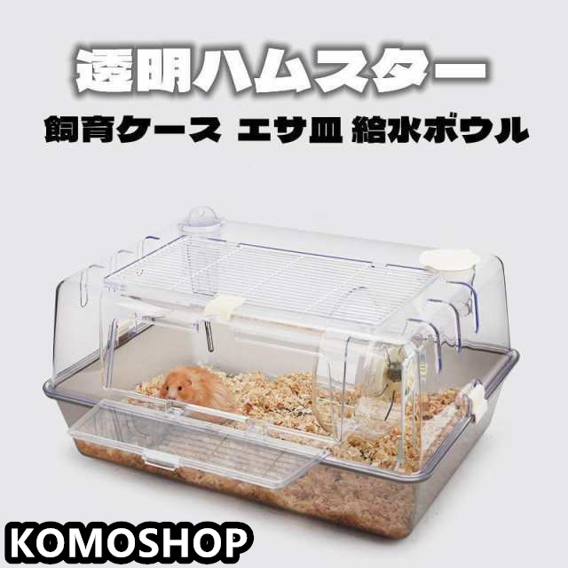 ハムスターケージ ハムスターハウス 飼育かご 広い 透明 アクリル 組立簡単 小屋 大空間 55cm 前扉 分離式 エサ皿 給水ボウル