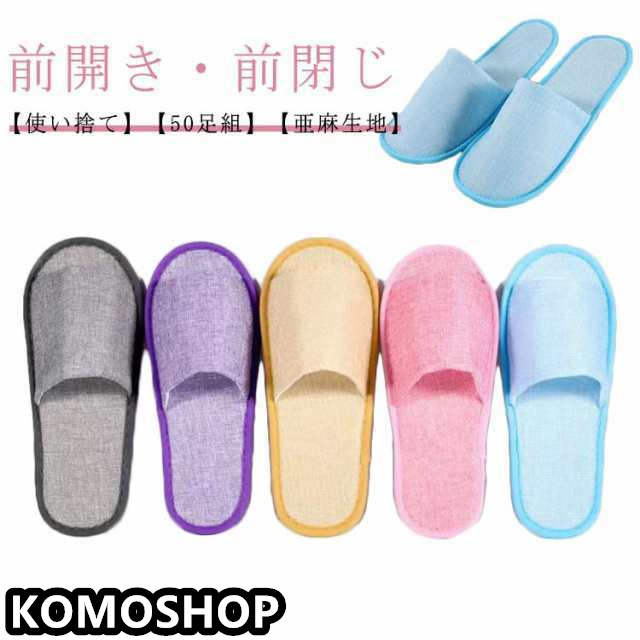 【50足組】使い捨てスリッパ リネン 亜麻生地 前開タイプ 前あき 使い捨て フリーサイズ 室内履き スリッパ 来客用 携帯用 病院 ホテル