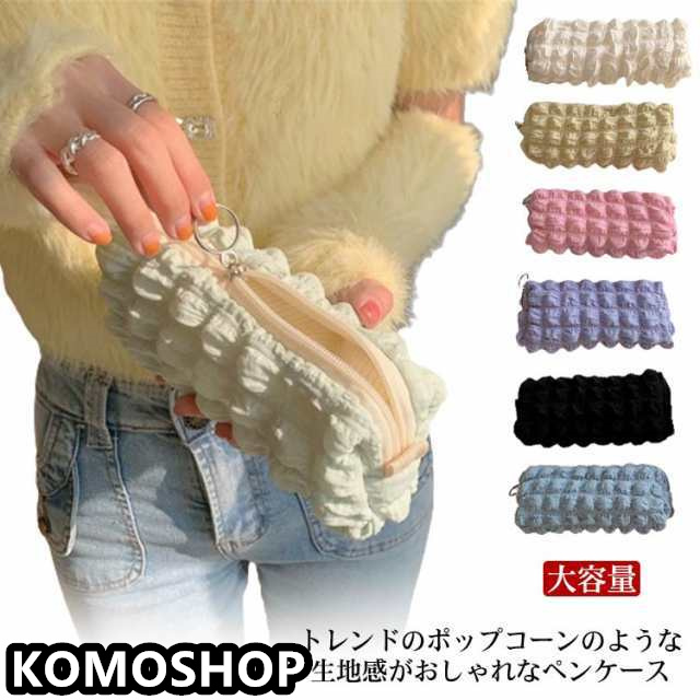 ペンケース ポップコーン生地 パステルカラー かわいい 女子高生 高校生 ふわふわ ぽこぽこ 大容量 シンプル 文具 韓国 おしゃれ ワッフ