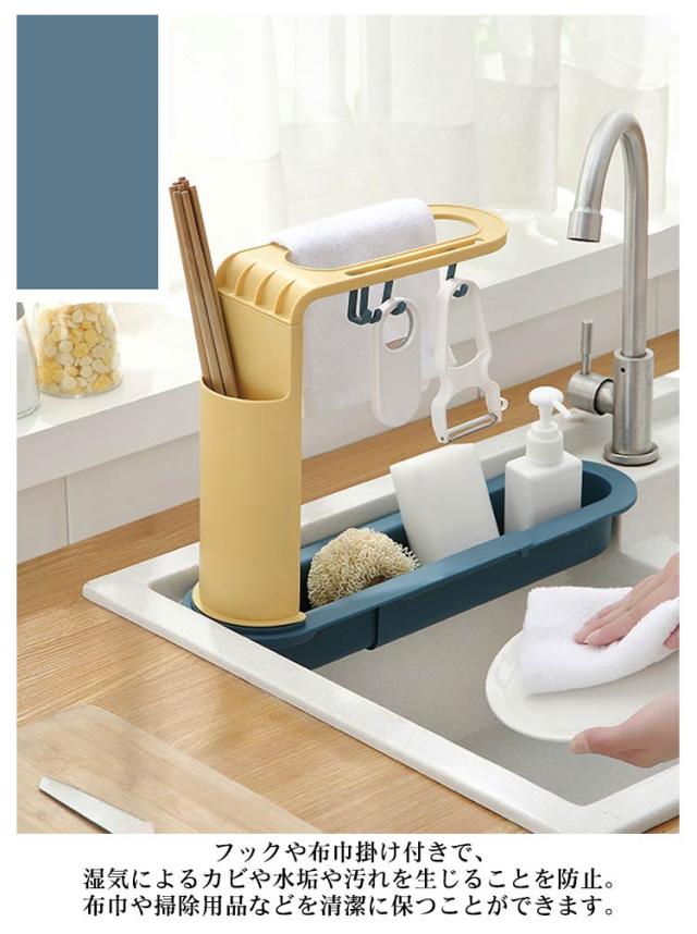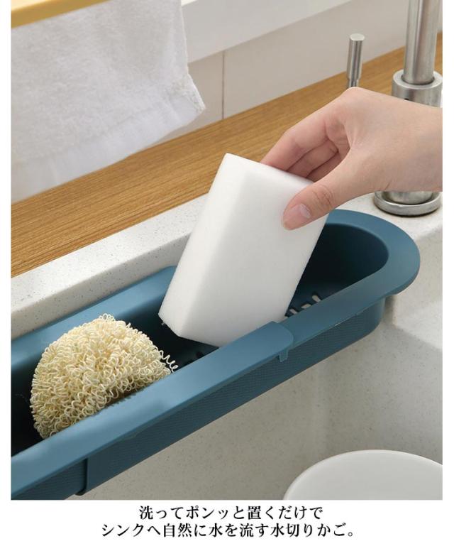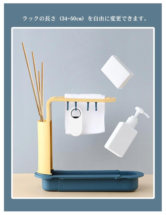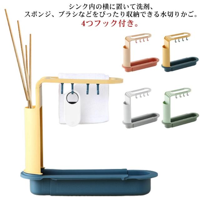 スポンジホルダー シンク内 水切りラック 伸縮 スリム スポンジラック スポンジ置き ふきん掛け フック付き シンクサイド 水切りかご 水